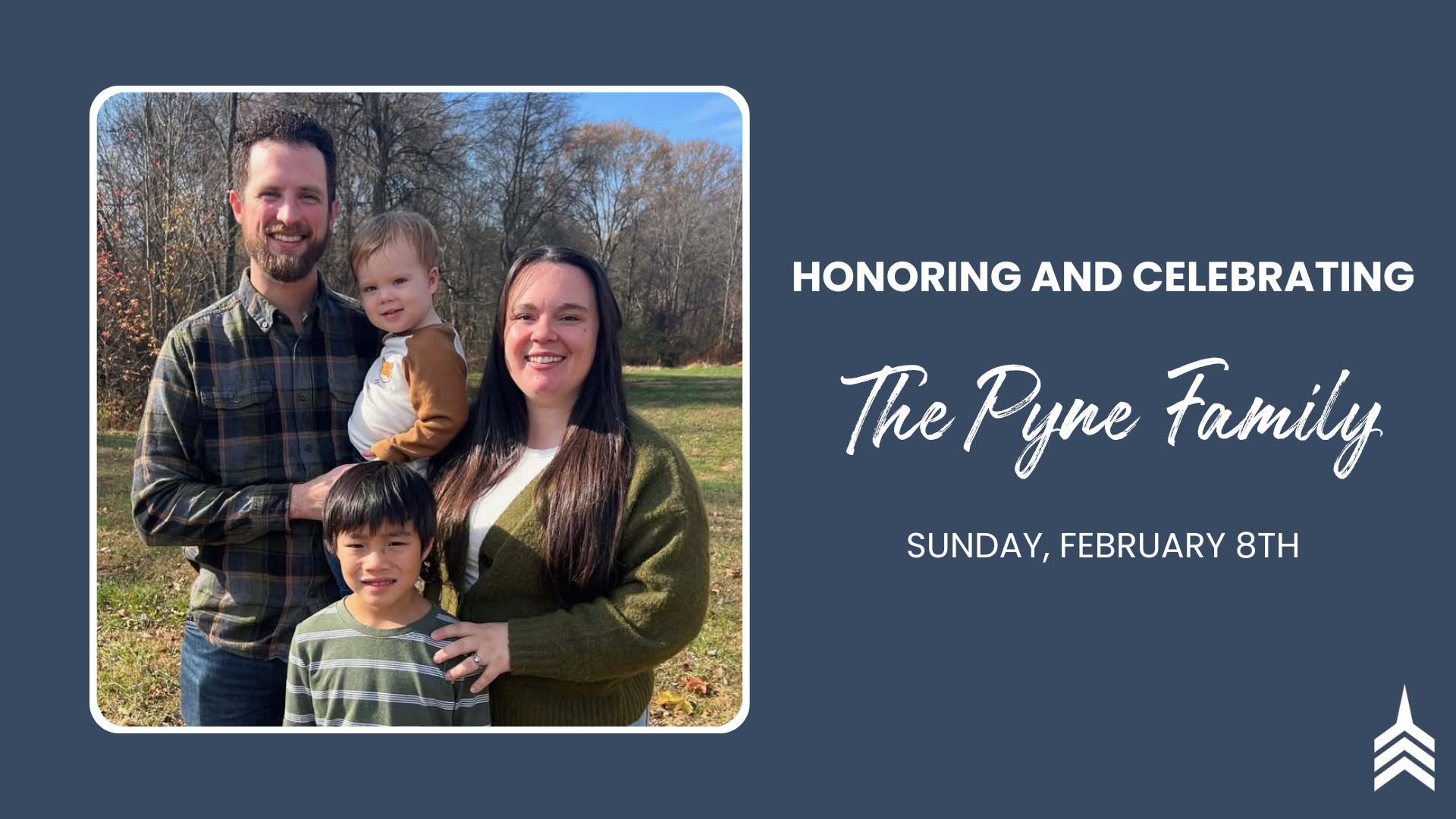 We are so thankful to God for the last 3 1/2 years of serving the Lord together with the Pyne family. Nate Pyne has served so faithfully as our Worship and Production Director and Stephanie has served so faithfully as our Connections Director. They have both co-led a small group that has produced much gospel fruit while also intentionally investing in deep discipleship of many men and women in our church through teaching various Bible studies, investing in personal discipleship, and providing much Biblical counseling and wisdom to many.